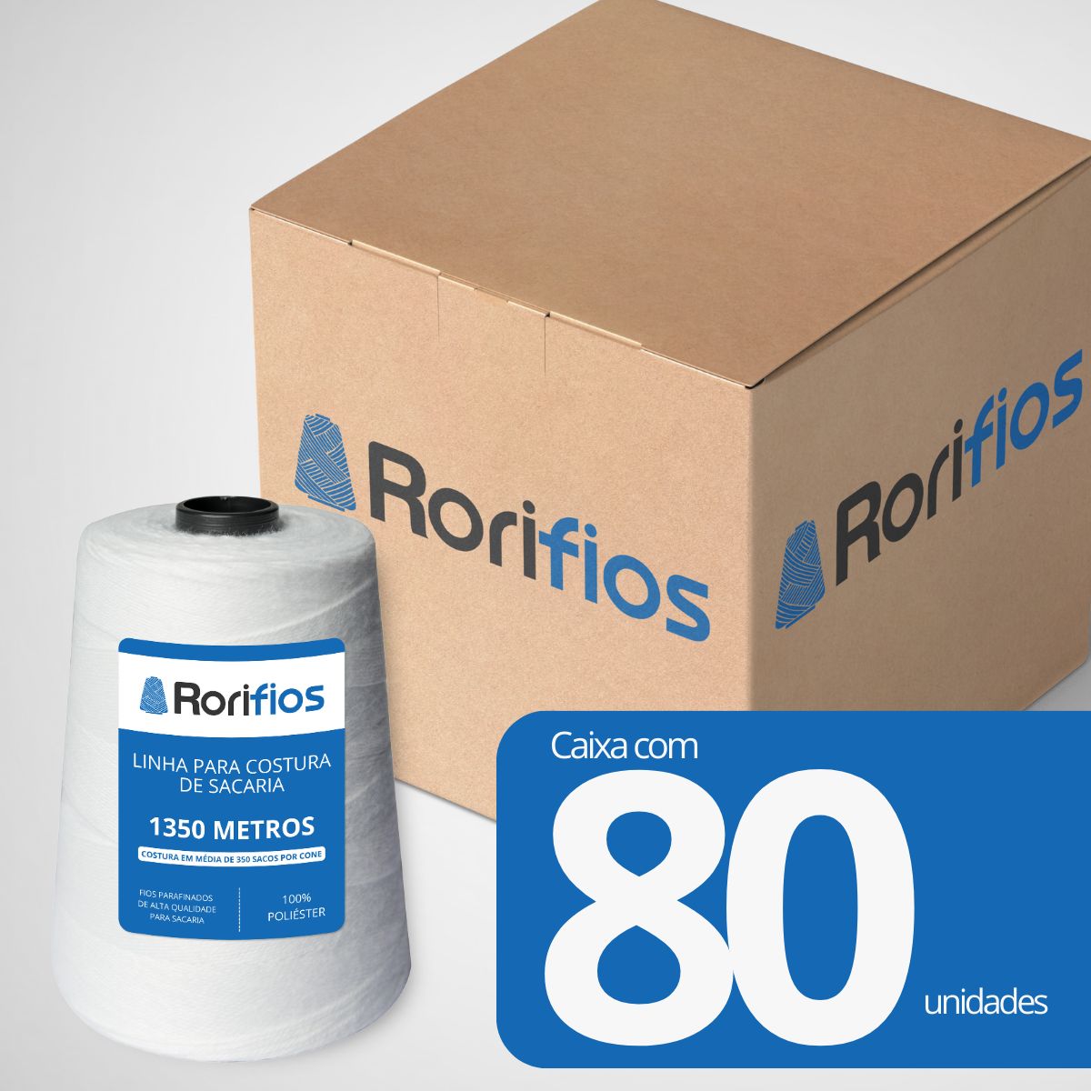 Caixa com 80 cones com 250g cada de poliéster para máquinas de costurar sacos.